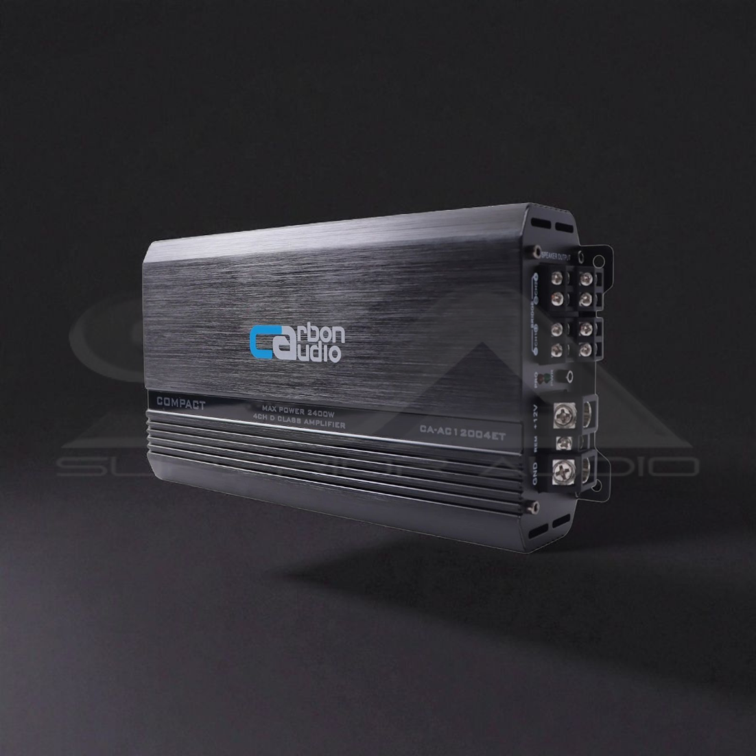 The CA-AC12004ET is a 4-channel Class D car amplifier, designed to give you strong performance in a compact package. It’s built to power multiple speakers (e.g., front + rear full-range) or provide flexibility in bi-amping or bridging configurations. It belongs to Carbon Audio’s “Compact” line, emphasizing efficient design and install ease.