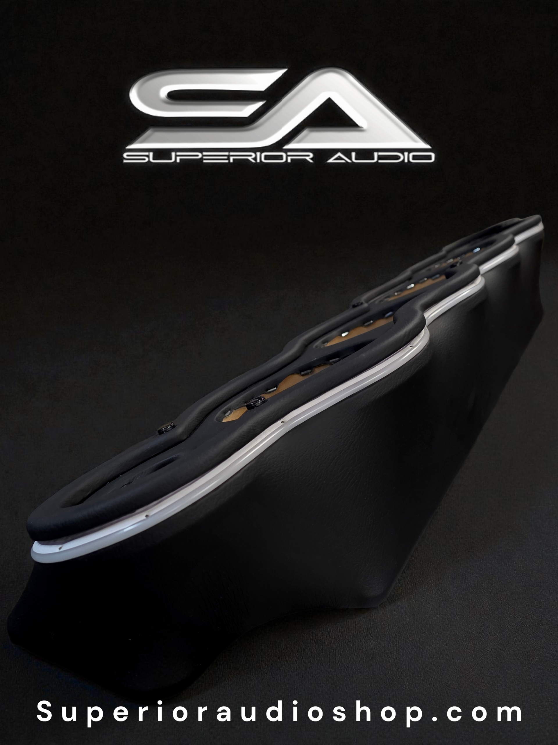 The Color Chase BT Universal Speaker Panel 4x6.5 & 2xTW is a high-quality speaker panel designed by SuperiorAudio. It is specifically engineered to fit 6.5" speakers and larger, making it compatible with various vehicle makes. The United States-made panel provides a universal fitment solution for car audio and video installation projects, ensuring a seamless integration of speakers in your vehicle. The sleek design and superior sound quality make it a stylish and functional addition to any car audio setup.